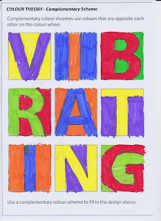 For the complemantry sheme exercise I had to employ coloured markers to colour in the shapes below using just complementary colours without letting the same colours impact.